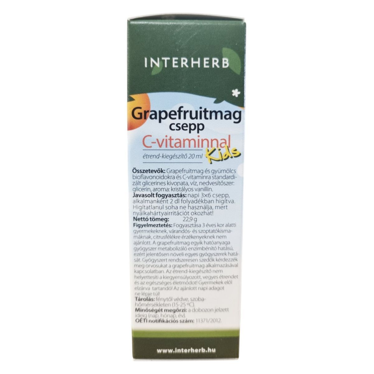 A Grapefruitmag csepp C-vitaminnal Kids egy olyan étrend-kiegészítő, amelyet kifejezetten a fiatal, fejlődésben lévő szervezet számára fejlesztettek ki. A termék citrus bioflavonoidokat és C-vitamint tartalmazhat, amelyek hozzájárulhatnak az immunrendszer támogatásához. A készítmény jóízű és alkoholmentes, így ideális lehet minden korosztály számára. A termék használata során fontos, hogy mindig hígítva alkalmazzuk, mivel hígítatlanul nyálkahártyairritációt okozhat. A termék forgalmazója a BGB Interherb Kft., és az OETI notifikációs száma 11371/2012.