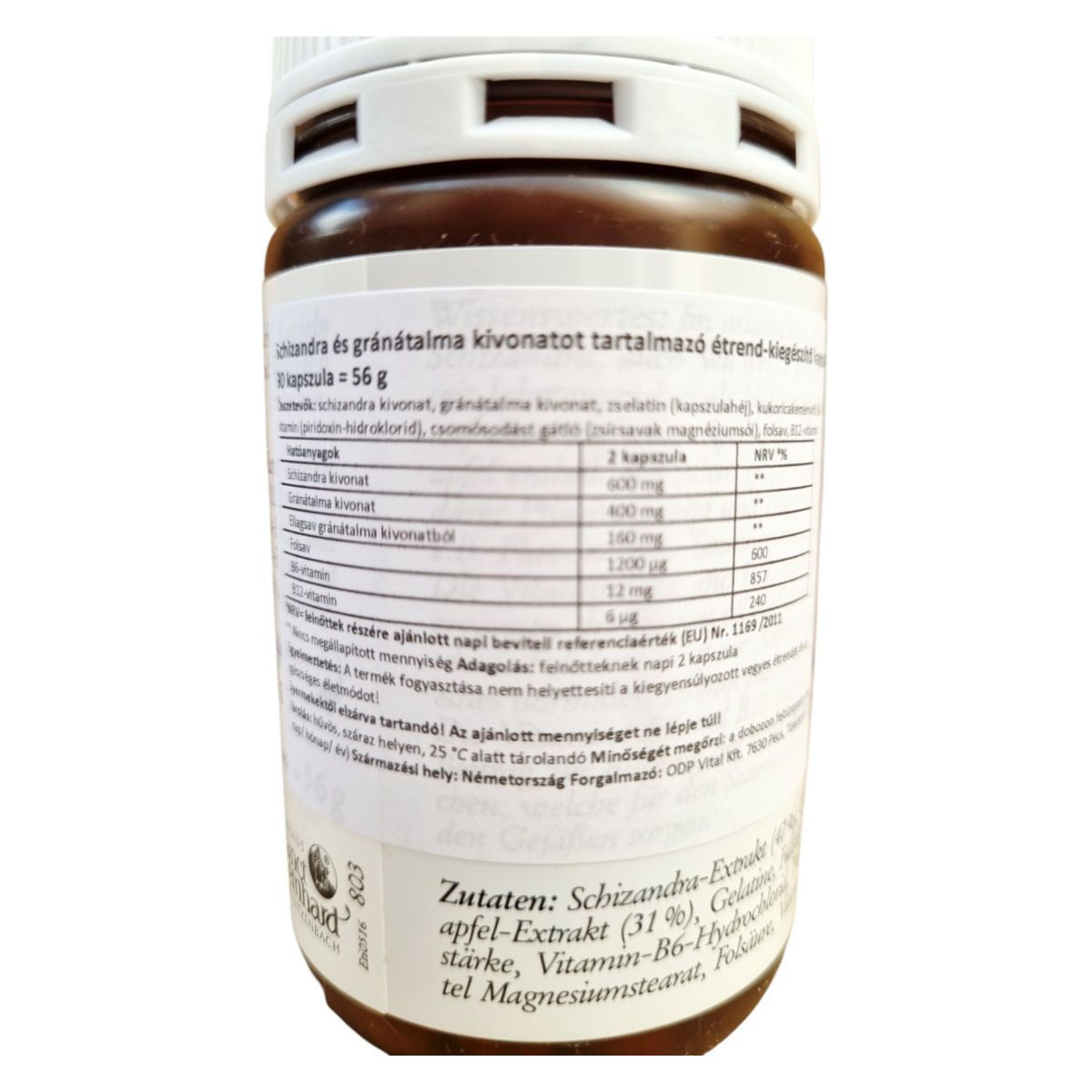 Ez a termék schizandra és gránátalma kivonatot tartalmaz, amelyek hozzájárulhatnak a szervezet antioxidáns védelméhez. A B6-, B12-vitamin és folsav támogathatják az immunrendszer normál működését.