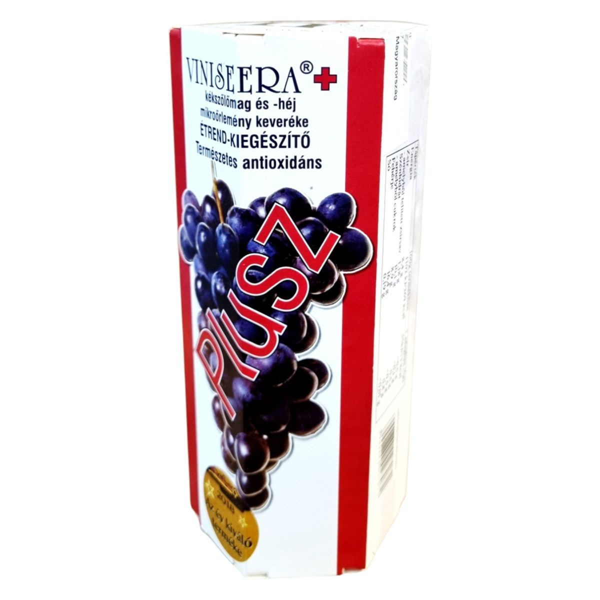 A VINISEERA+ kékszőlőmag és -héj mikroőrlemény egy természetes antioxidánsokat tartalmazó étrend-kiegészítő, amely Magyarországon készül. A termék fő összetevője a kékszőlőből készült szőlőmag-szőlőhéj mikroőrlemény, amely nem törkölyből készül. A termék több mint 4500 mg összpolifenolt tartalmaz 100 grammjában, amelyek antioxidáns hatásuk révén hozzájárulhatnak a szervezet oxidatív folyamataival szembeni védelemhez. A termék különféle italokba és ételekbe keverhető, így könnyen beilleszthető a napi étrendbe.