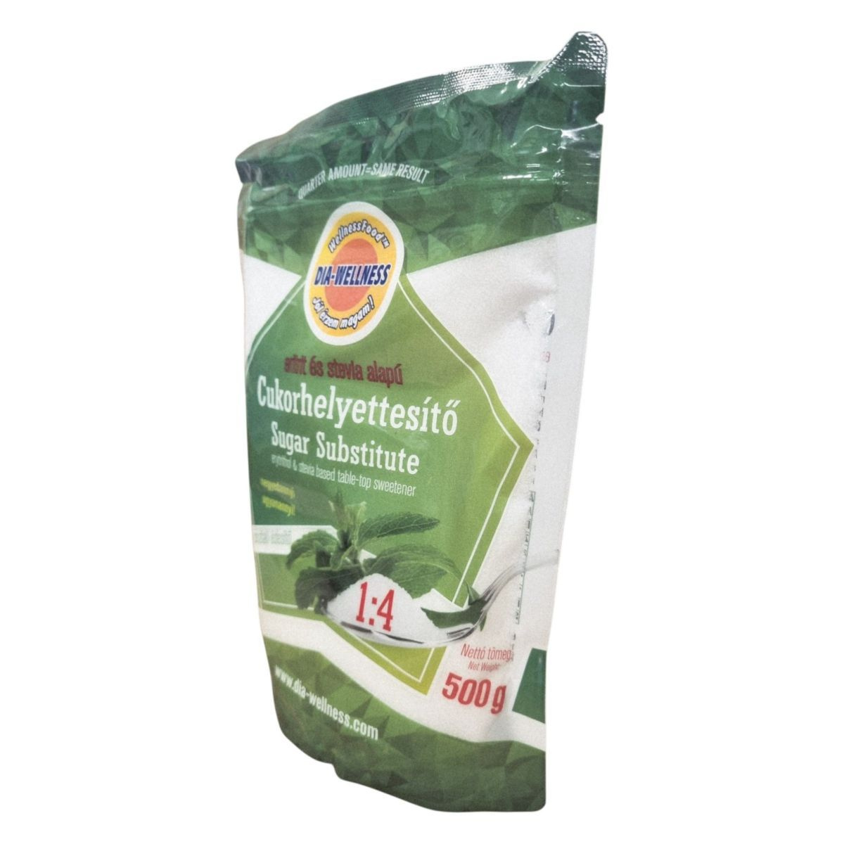Édesítő hatása négyszerese a kristálycukorénak. 25 g Dia-Wellness 1:4 cukorhelyettesítő kb. 100 g cukor édesítőhatásának felel meg.