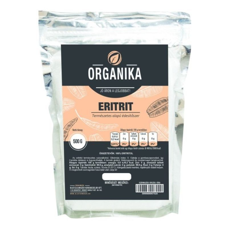 Figyelem: Az eritrit kis mennyiségben is mérgező lehet kutyáknál. Az eritritol természetes cukoralkohol. Kis mennyiségben megtalálható gombákban, körtében, dinnyében, szőlőben, és erjesztéssel készült ételekben: borban, szójaszószban, sajtban. Glikémiás index: 0. Felhasználás: Édesítő ereje 60-80%-a a közönséges cukorénak. Használhatják diabéteszben szenvedők, diétázok, fogyókúrázok és mindenki akinek fontos az egészsége. Nem okoz fogszuvasodást, mert a szájban található baktériumok nem tudják feldolgozni. Gátolja a gombaszaporodást, így candida diétások is fogyaszthatják.