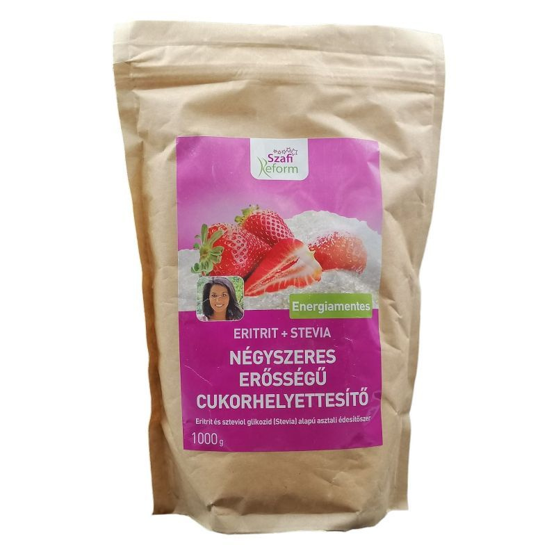 Szafi fitt "0" kalóriás cukorhelyettesítő eritritollal és sztíviával, 0% felszívódó szénhidráttartalommal. Cukorbetegek és fogyókúrázók is fogyaszthatják. Mivel mesterséges édesítőt (szukralózt) nem tartalmaz, így jobban dominál a stevia íze, mint egy szukralózzal betakart édesítő. Viszont a jó hír az, hogy sütés után teljesen elveszíti a stevia kesernyés ízét!