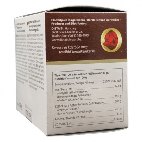 Összetevők: kukoricakeményítő, kakaós étbevonó massza: 33, 5% (cukor, növényi zsír, zsírszegény kakaópor, emulgeálószer: szójalecitin, étkezési sav: citromsav, aroma: etil-vanillin), kristálycukor, margarin (növényi olajok és zsírok, víz, só, emulgeálószer: zsírsavak mono- és digliceridjei, étkezési sav: citromsav, aroma, szinezék: karotinok), vaj, tojás, rizsliszt, pálmazsír, kukoricaliszt, burgonyapehely (burgonyapor, emulgeálószer: zsírsavak mono- és digliceridjei, stabilizátor: dinátrium-difoszfát, tartósítószerek: nátrium-szulfit, nátrium-hidrogén-szulfit, savanyúságot szabályozó anyag: citromsav), burgonyakeményítő, vaniliás cukor (cukor, aroma: etil-vanillin), aromák, stabilizátorok: xantán-gumi, guar gumi, zsírsavak mono- és digliceridjei, cukorréparost, só.