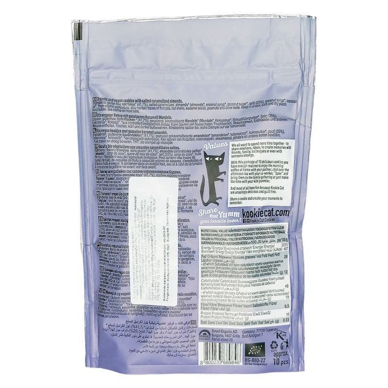 Összetevők: gluténmentes zabpehely* (41,7%), sós karamellizált mandula* (mandula*, kókusz szirup*, kókuszcukor*, só) (25%), kókusz szirup*, kókuszolaj*.*összetevők biogazdálkodásból