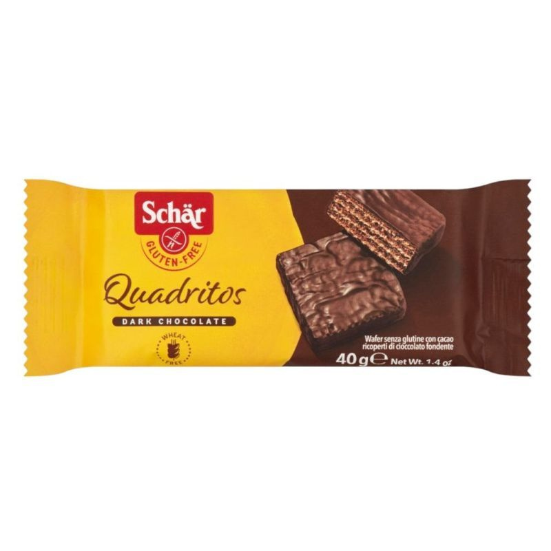 Schär gluténmentes étcsokoládéval bevont kakaós ostya felhasználható gluténmentes diétában.