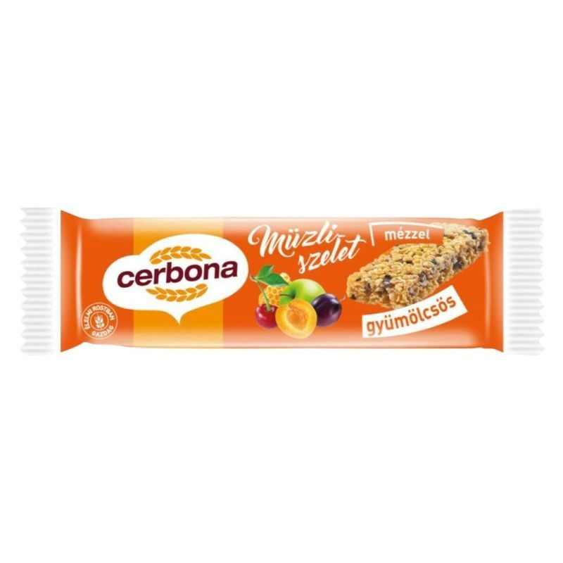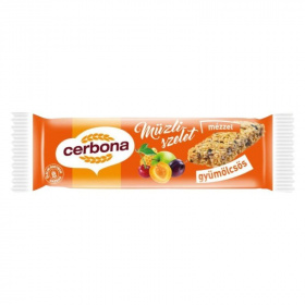 A Cerbona gyümölcsös müzliszeletet többfajta gabonapehely, méz és gyümölcsdarabok teszik igazán ellenállhatatlanná.