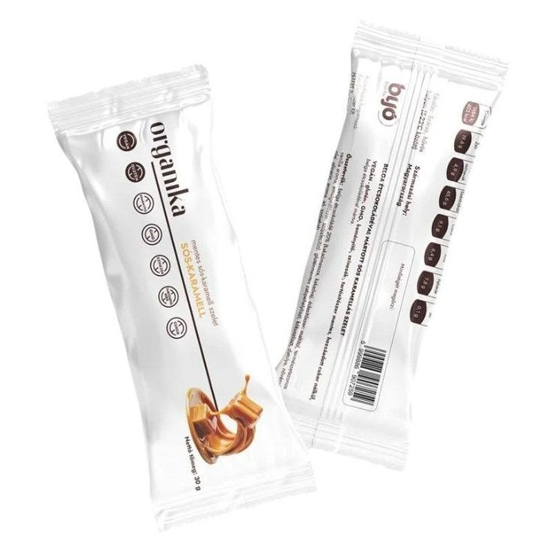 Sós karamellás ízű szelet belga étcsokoládéba mártva, édesítővel. Vegán, paleo, glutén-, színezék-, ízfokozó-, GMO mentes termék. 0% hozzáadott cukor, csak természetes módon előforduló cukrokat tartalmaz. 50%-kal csökkentett szénhidráttartalommal rendelkezik, élelmi rostban gazdag, hozzájárul az egészséges bélflóra fenntartásához. Kakaó szárazanyag az étcsokoládéban legalább 50%.