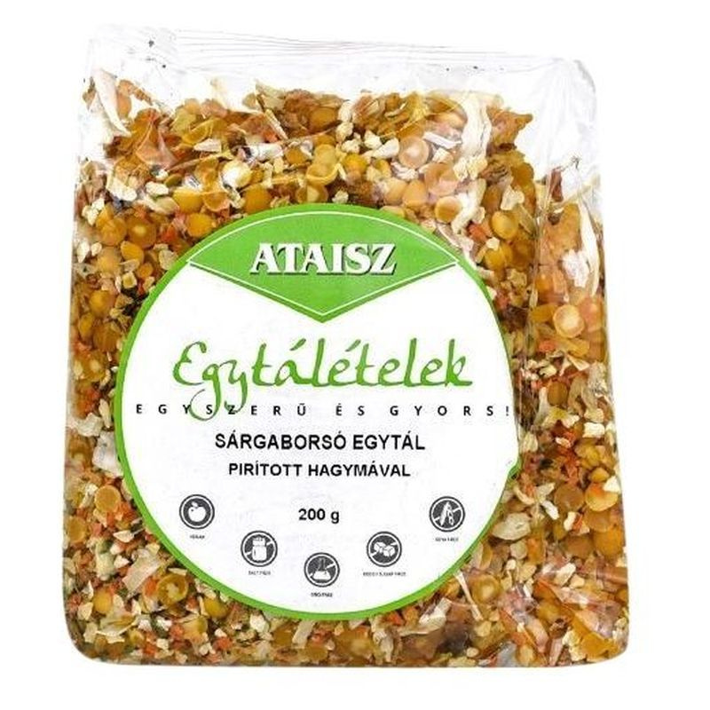 Elkészítés: egy fazékban forraljunk fel 700 ml vizet. Ha felforrt tegyünk bele egy kevés olajat és fűszerezzük, sózzuk ízlésünk szerint (nyugodtan használjuk kedvenc leveskockánkat, ételízesítőnket vagy Ataisz Vegantériát. (A termék sót nem tartalmaz!) Ezután öntsük bele a tasak tartalmát, keverjük meg és takaréklángon 45 percig lefedve főzzük. Időnként keverjük meg. A főzési idő leteltével húzzuk le a tűzről és 20 percet hagyjuk állni. Dúsítható vega virslivel, tofuval. Nem tartalmaz: aromát, fűszerkivonatot, tartósítót.