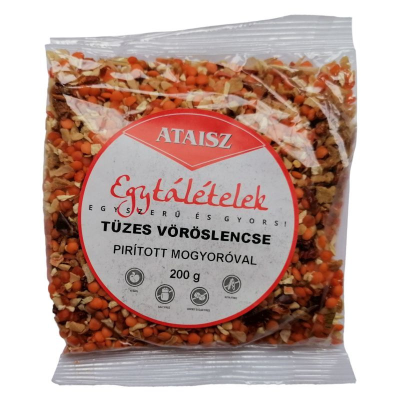 Összetevők: vöröslencse (Török) szárított zöldségek (EU) szárított pritamin paprika (Kína) szárított paradicsom (Kína) pirított, szárított hagyma (Kína) pirított mogyoró (Török) tört chili (Kína)