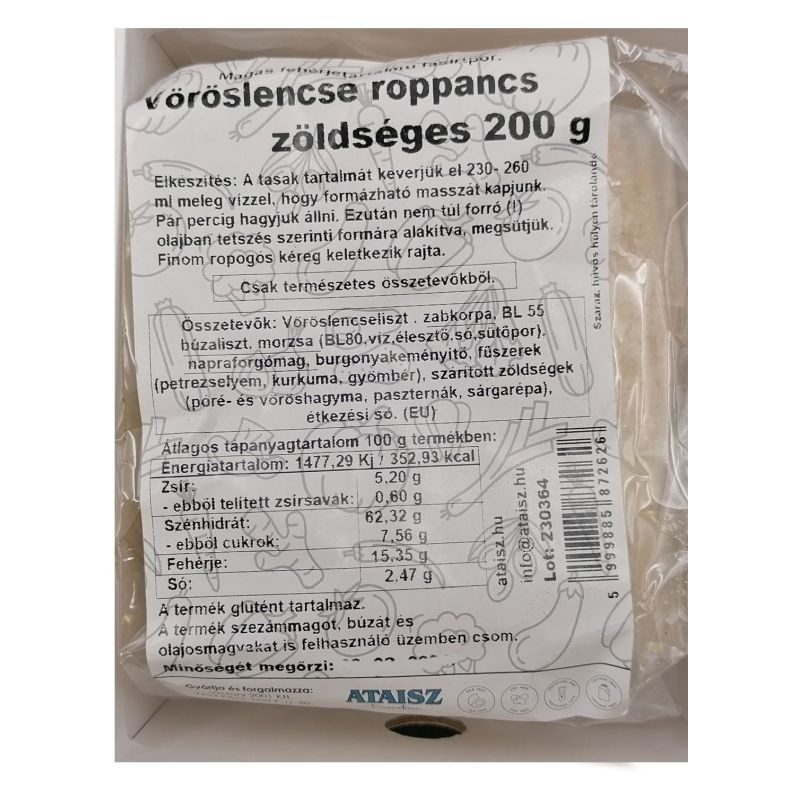 A keverék szárított zöldségekkel és vöröslencseliszttel biztosít húsmentes, rostban gazdag étkezési alternatívát.