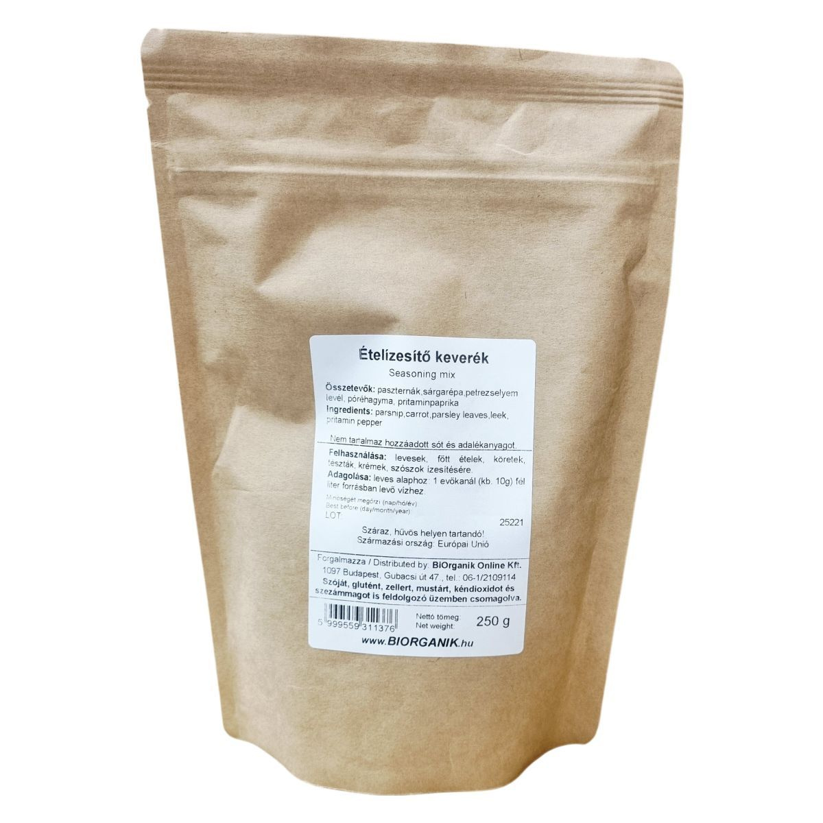 A Naturmind® Ételízesítő Mix különleges keveréke paszternákból, sárgarépából, petrezselyemlevélből és póréhagymából áll, amely tiszta, természetes ízekkel járul hozzá különféle ételek gazdagításához. Nem tartalmaz hozzáadott sót vagy mesterséges adalékanyagokat, így egészségtudatos választásnak számít. Az ételízesítő ideális levesek, főtt ételek, köretek, tészták, krémek és szószok ízesítésére egyaránt, használata egyszerű, csak annyi kell belőle, hogy a kívánt finomságot elérje. Európai Unióból származik, csomagolása kifejezetten allergén feldolgozó környezetben történik, ezért az érintetteknek célszerű ezt figyelembe venni.