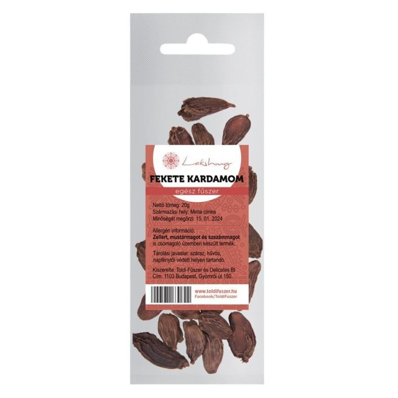 A fekete kardamom hüvelyét és a bennük lévő magokat hasznosítjuk. A fekete kardamom nagyobb méretű, mint a zöld kardamom, felülete durvább, színe sötétbarna. A szedést követően tűz felett szárítják, ennél fogva íze a kámforosság mellett füstös aromát is hordoz. A zöld kardamommal ellentétben, a fekete kardamom nem alkalmas édességek fűszerezésére. Az indiai konyha húsételek, mártások készítéséhez, míg a vietnámi konyha többek között a pho leves ízesítésére használja.