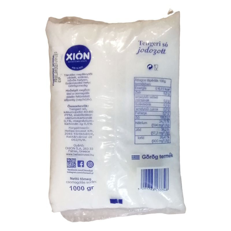 Összetevők: tengeri só, kálium-jodid 40-60 ppm, stabilizátor: nátrium karbonát 0,1%, magnézium karbonát 0,5%.