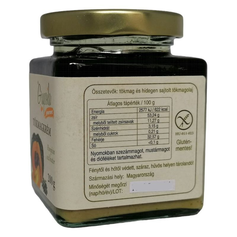 Tökmagkrémünk olajtök magjából, pörkölés nélkül, hideg sajtolással készül.