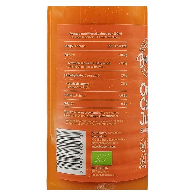 Tápanyag-információ egységenként (100 ml): Energia: 132 kJ/31 Kcal, zsír: 0,5 g -amelyből telített zsírsavak: 0,1 g, szénhidrát: 7,8 g -amelyből cukrok: 7,8 g, só: 0,10 g, fehérje: 0,5 g.