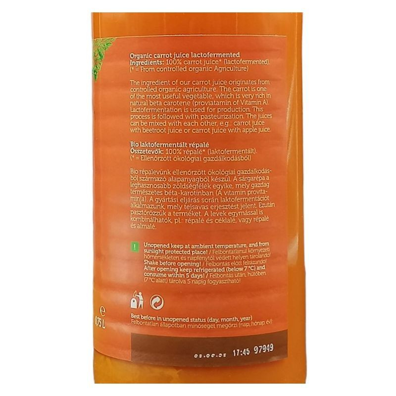 Összetevők: 100% répalé* (laktofermentált). *Ellenőrzött ökológiai gazdálkodásból származó alkotó.