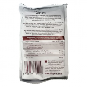 100% növényi eredetű kókuszitalpor, amelyből 60 g megfelel 1 nagy kókuszdióból nyerhető friss tejnek. Ajánljuk, turmixok, reggeli italok, koktélok, gabonakásák, sütemények és levesek felhasználásához.