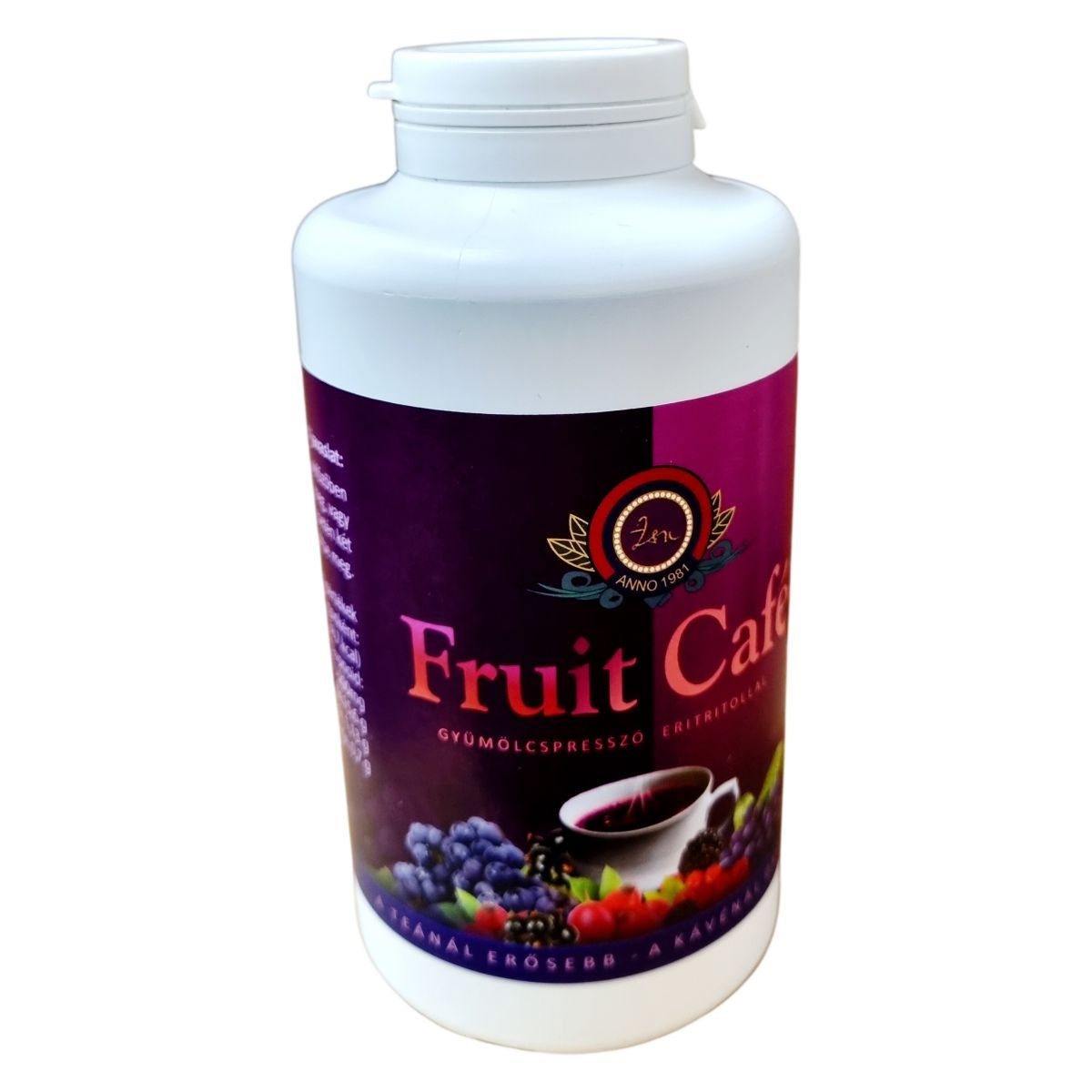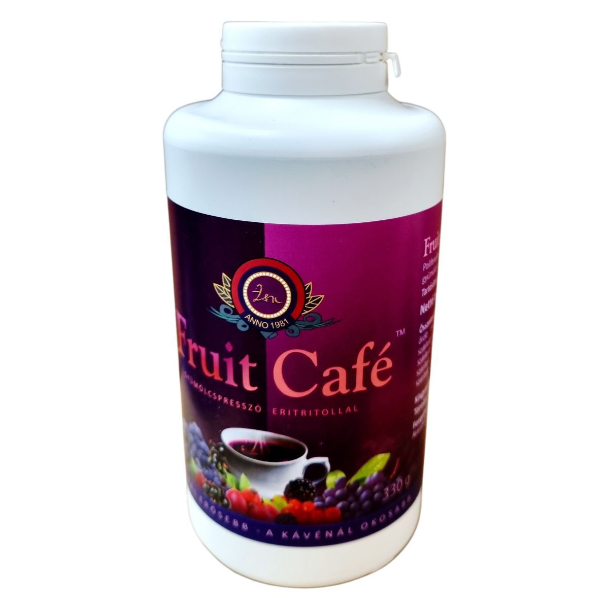 A Fruit Café™ gyümölcspresszó egy innovatív termék, mely eritritollal édesített gyümölcsmag-héj őrleményből készül. A termék különlegessége, hogy a polifenolokat és flavonoidokat gazdagon tartalmazó gyümölcsmag-héjakból áll, így egészséges alternatívát kínál a hagyományos kávé és tea mellett. A változatos összetétel többféle szárított gyümölcsöt foglal magában, melyek természetesen édes ízt és antioxidáns hatást biztosítanak, egyben tartósítószermentesek. A termék könnyen elkészíthető presszó- vagy hagyományos kávéfőzőben, így otthoni felhasználásra is ideális.
