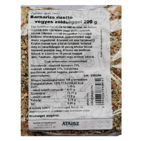 Összetevők: előgőzölt barnarizs (EU), szárított sárgarépa, paszternák (EU), pirított, szárított hagyma (Kína), szárított paradicsom (Kína), petrezselyem (EU).