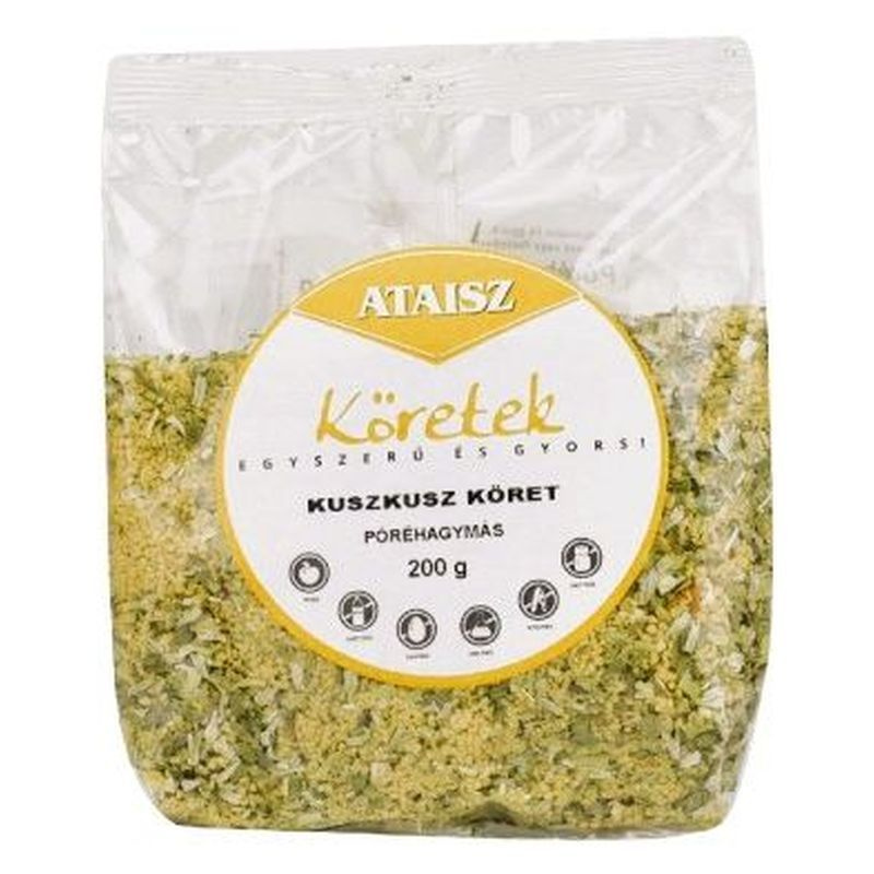 Összetevők: kuszkusz (durumbúza) (Franciaország), szárított zöldségek (póré- és vöröshagyma, paradicsompehely (EU).