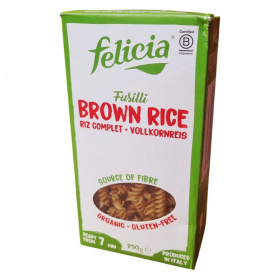 A Felicia Bio barnarizs fusilli egy organikus, gluténmentes tészta, amelyet Olaszországban gyártanak. Kiváló rostforrás, és mindössze 7 perc alatt elkészíthető. A termék 100% bio barnarizslisztből készül.