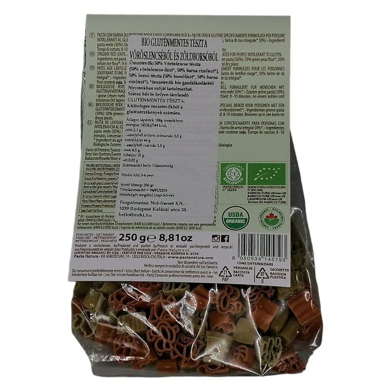 Bio Gluténmentes tészta vöröslencséből és zöldborsóból - Állatkás