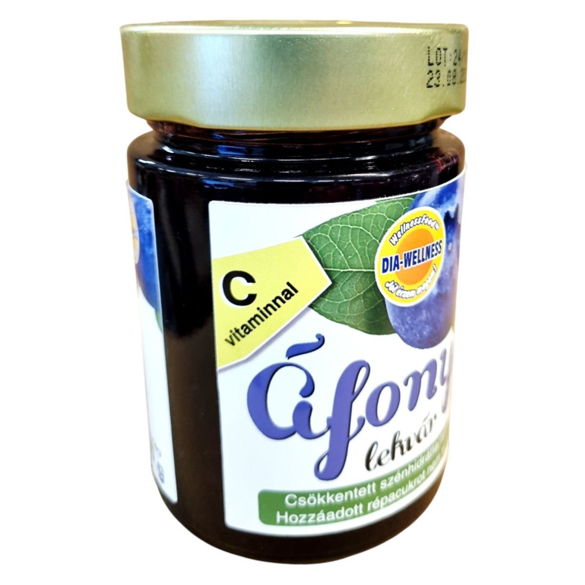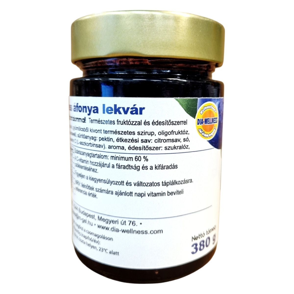 A Dia-Wellness áfonya lekvár csökkentett szénhidráttartalommal rendelkezik, természetes fruktózzal és édesítőszerrel készül. Nem tartalmaz hozzáadott répacukrot, így ideális választás lehet low-carb étrendet követők számára.