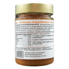 Összetevők: gyümölcsvelő 50% (kajszibarack 45%, alma), gyümölcsből kivont természetes szirup, oligofruktóz, tömegnövelőszer: polidextróz, sűrítőanyag: pektin, étkezési sav: almasav, aromák, színezék: lutein, carmin-vörös.