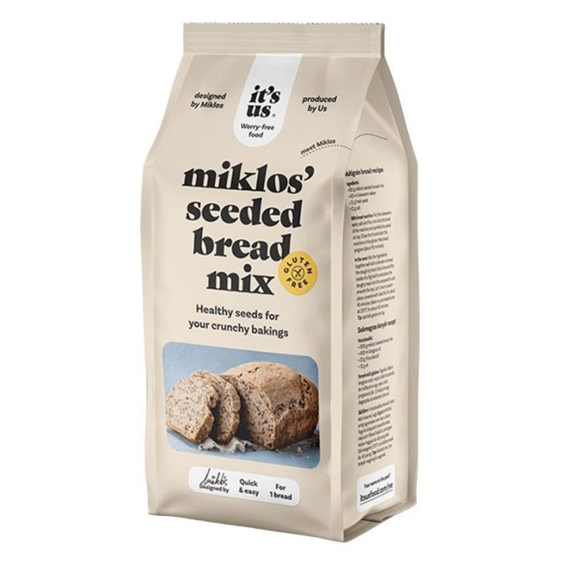 Gluténmentes. Összetevők: búzakeményítő, lenmag, szezámmag, tökmag, napraforgómag, dextróz, rizsliszt, burgonyarost, almarost, stabilizátor /guargumi/, búzarost, térfogatnövelő /Na-bikarbonát/, antioxidáns /aszkorbinsav/. 500 g. Tápérték 100 g termékben: Energia 1523 KJ (359 kcal), Fehérje 3,90 g, Szénhidrát 82,2 g, Zsír 1,60 g.