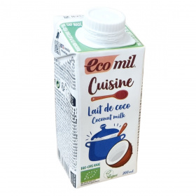 Ecomil bio kókusz főzőkrém glutén- és laktózmentes növényi termék. Vegetáriánus, vega étkezésbe is beilleszthető.