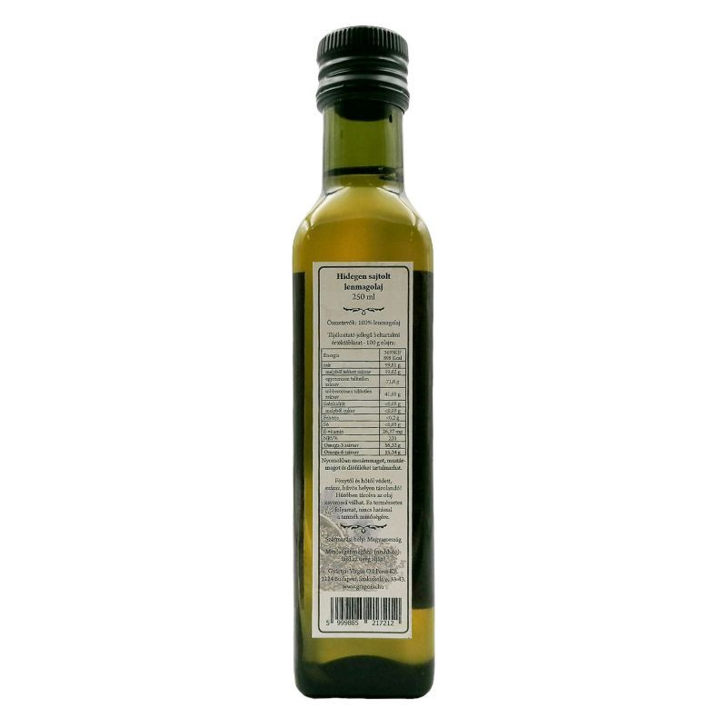 A hidegen sajtolt lenmagolaj alfa-linolénsavat tartalmaz, amely növényi eredetű omega-3 zsírsav.