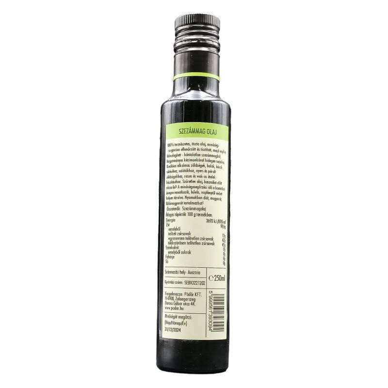 A Pödör bio- szezámmagolajat a szezám fehér magjából állítjuk elő, kézi szüretelés után, ami garantálja, hogy a sajtolásnál kizárólag optimálisan érett magokat használjunk fel.