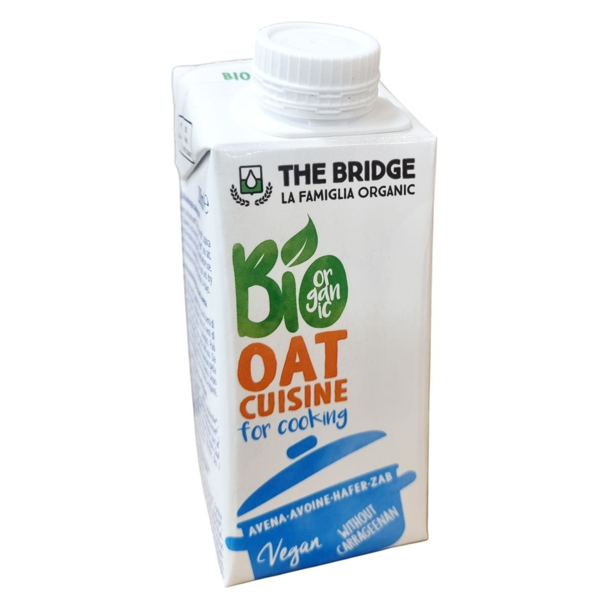 Ez a termék egy bio minősítésű, növényi eredetű főzőkrém, amely zab alapú és teljesen vegán. Az összetevők között szerepel a forrásvíz, zab, napraforgó olaj, tápióka keményítő, valamint természetes sűrítőanyagok, mint a szentjánoskenyérliszt és guargumi, valamint tengeri só. A termék carrageenan nélkül készül, és a Tetra Pak® csomagolás védi a minőségét. Felnyitás után hűtőben kell tárolni, és 3–4 napon belül el kell fogyasztani. A termék tartalmazhat szójamaradványokat, ezért allergiásoknak figyelmes használat javasolt.