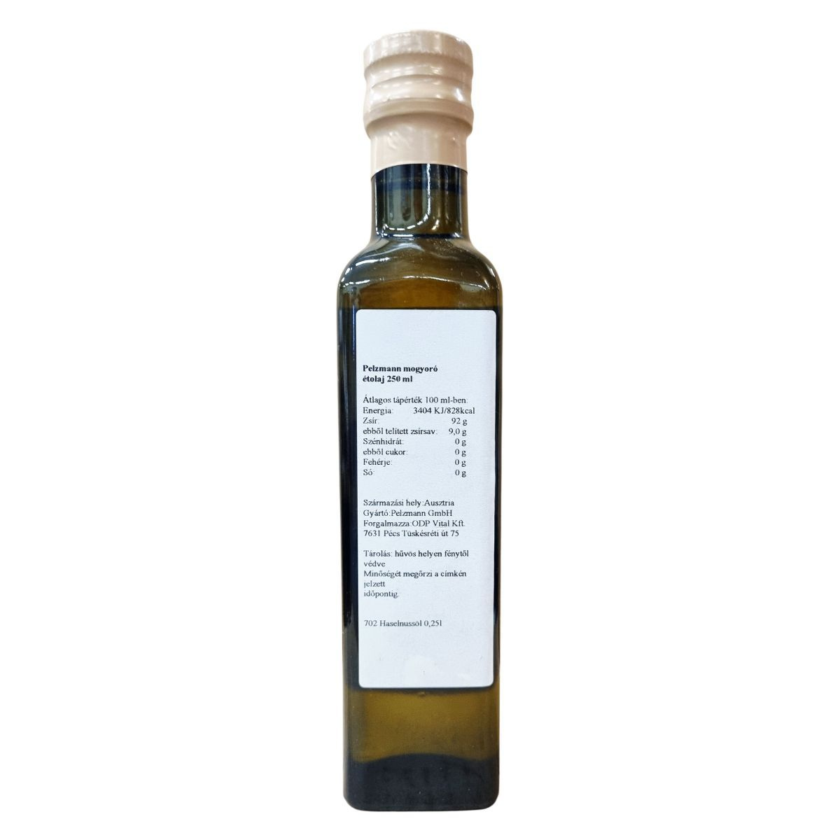 A Pelzmann mogyoró étolaj Ausztriában készül, minőségi mogyorókból préselve. Kiváló ízvilágának köszönhetően különleges élményt nyújt különféle ételekhez, így sütéshez, salátákhoz, desszertekhez és müzlikhez egyaránt. A termék fényvédett csomagolásban, üveg palackban kerül forgalomba. A göngyöleg újrahasznosítható, a palack üveg, a kupak fém és műanyag alkotóelemekből áll, a helyi szelektív gyűjtési szabályok szerint kezelendő.