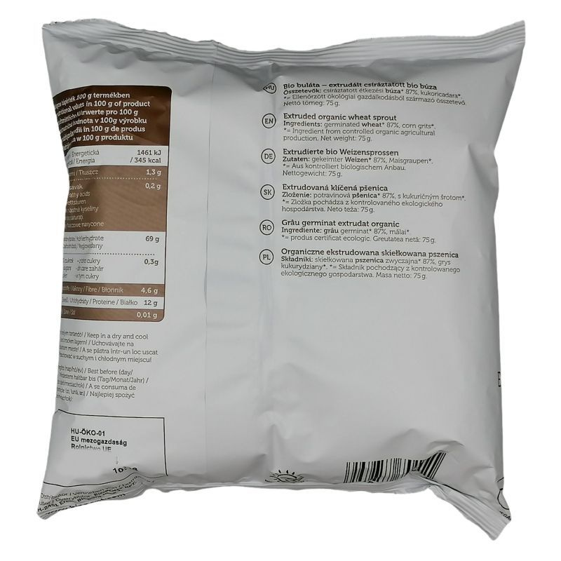 A Biopont buláta ideális választás az egész család számára! De mi is a buláta és miért jó? Csíráztatott búzából készült extrudált ropogtatnivaló, mely sok folyadékkal fogyasztva hamar eltelít. Amellett, hogy egészséges, nem túl magas a kalóriatartalma, így fogyókúra alatt is fogyasztható. A csíráztatásnak köszönhetően magasabb vitamin-, ásványianyag- és nyomelemtartalma, mint a hagyományos búzának.