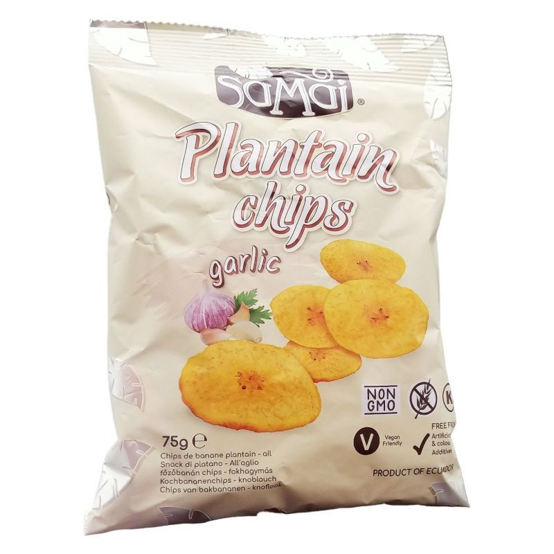 Összetevők: főzőbanán (70%) nem hidrogénezett pálmaolaj, szárított fokhagyma (2%) tengeri só, fűszerek, antioxidáns: citromsav.