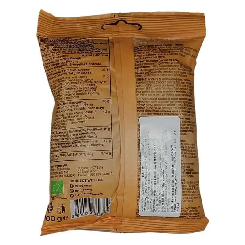 Összetevők: Gluténmentes zabliszt*,víz, quinoa liszt*(22%), szezámmag*(9%), illatmentes kókuszolaj*(6,7%), himalája só.*Ellenőrzött ökológiai gazdálkodásból.