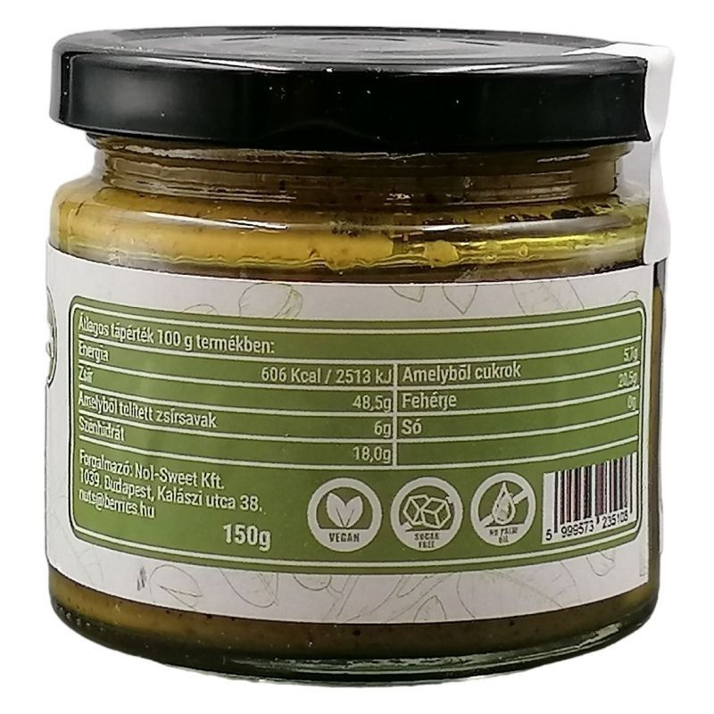Kiváló minőségű pisztáciából készült, gazdag ásványi anyagokban és vitaminokban, ami miatt nemcsak ízletes, hanem tápláló is. A krém krémes állaga és gazdag íze miatt tökéletes választás reggelire, uzsonnára vagy desszertként, és remekül illik különféle ételekhez, például smoothie-khoz vagy süteményekhez.