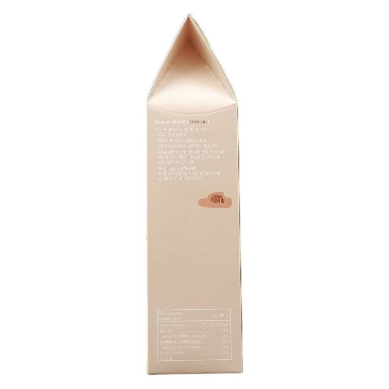 Törökmogyorós-csokis granola - ropogós finomság mogyoróval és belga étcsokival. Csokis granola termékünk a gazdag ízű törökmogyoró és a belga étcsoki párosával csábít reggelizésre, vagy csak nassolásra. Mosolygóssá tesz, és hosszú órákra biztosítja a szükséges energiát, ha dolgozni indulsz, edzésre szaladsz, vagy épp a gyerekek készülnek a suliba. A kényelmesebb hétvégi reggeliknek is ellenállhatatlan alkotóeleme, önmagában, vagy egy többfogásos brunch részeként.