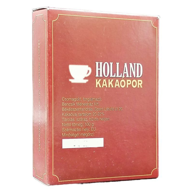 A Holland kakaópor 100g egy prémium minőségű termék, amely a legfinomabb kakaóbabból készült. A kakaópor 20-22%-ban tartalmaz kakaóvajat, ami gazdag ízélményt biztosít. Színe sötétbarnás vörös, ami már önmagában is a minőségét tükrözi. Az íze rendkívül intenzív, így a használatával készült ételek és italok valóban különleges élményt nyújtanak. A Holland kakaópor nemcsak a desszertek, hanem a különféle italok, például forró csokoládé vagy kakaó alapanyaga is lehet. A kakaópor finom, gazdag aromája és krémes textúrája lehetővé teszi, hogy bármilyen recepthez tökéletesen illeszkedjen. Használatával a sütemények, torták, pudingok és egyéb édességek ízét egy új szintre emelhetjük. A kakaópor nemcsak ízletes, hanem tápláló is, hiszen a kakaó gazdag antioxidánsokban és ásványi anyagokban, amelyek hozzájárulhatnak a szervezet egészségéhez.