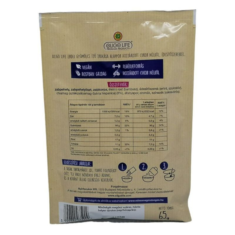 A zabkása növényi alapú, édesítőszerekkel és gyümölcsporral készül, tejmentes alternatíva.