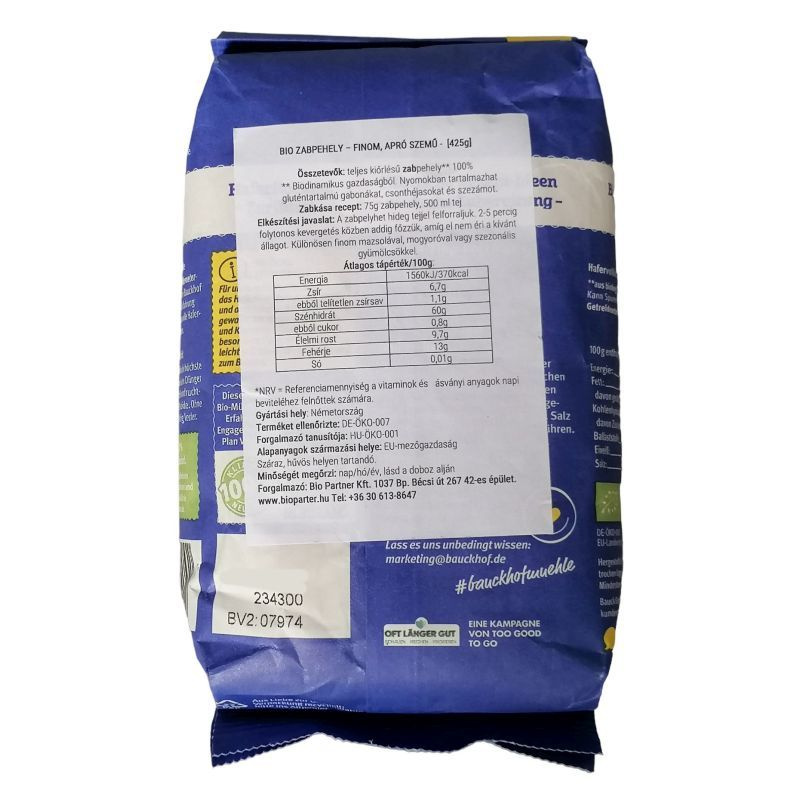 Bauckhof bio teljes kiőrlésű zabpehely - apró szemű 425g
