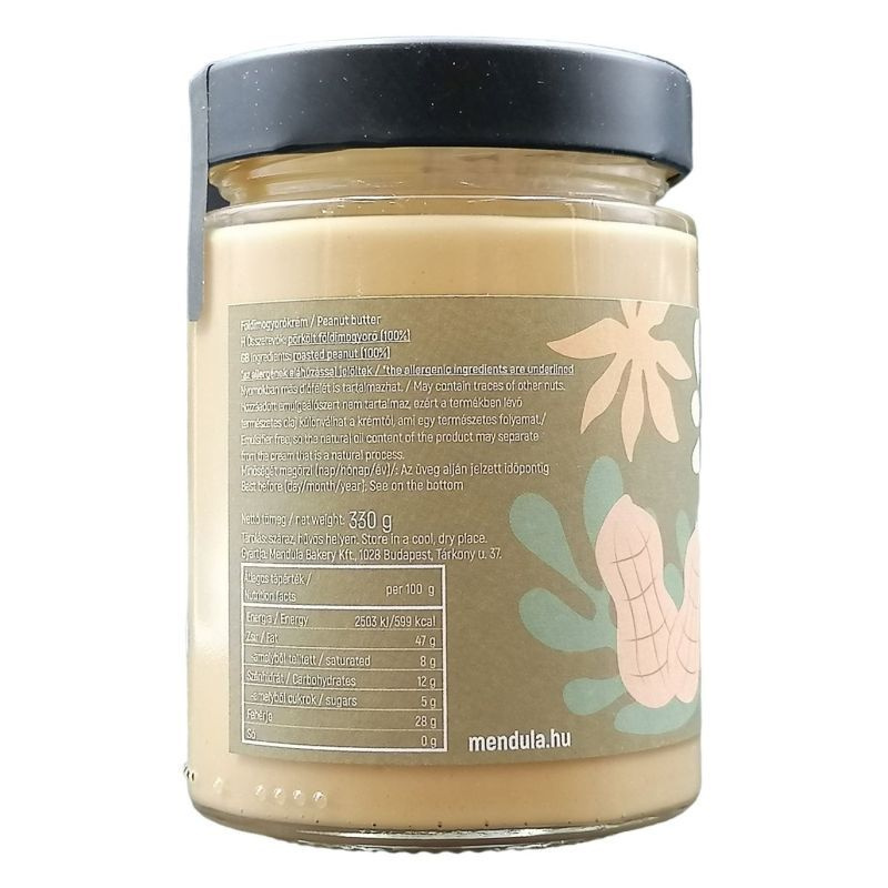 A legismertebb, és talán a legnépszerűbb magkrém végre a Mendula kínálatában! A földimogyoróról sokaknak csak az jut eszébe, hogy ez az a sós, olajos mag, amit tv nézés közben eszegetünk, pedig nem kéne, mert hizlal, és egészségtelen. Ez óriási tévedés! Magas az energiatartalma, és kiemelkedően magas a fehérjetartalma az olajos magok között 100 g-jában 26 g fehérje található! Nem véletlenül szerepel a rendszeresen sportolók étrendjében is. Értékes összetevője továbbá a B-vitamin, az antioxidáns E-vitamin és a fitoszterol, amelynek gyulladáscsökkentő hatást tulajdonítanak. Nem mindegy azonban, hogy milyen terméket veszünk le a polcról a boltban. A Mendula mogyorókrém hozzáadott zsíradék nélkül -szárazon- pirított földimogyoróból készült, és krémmé őrlése során sem adunk hozzá semmilyen adalékanyagot se pálmazsírt, se emulgeálószert, se egyéb növényi zsíradékot. Csak a finom, pörkölt, natúr földimogyoró van benne, semmi más. Tudtad? A világ földimogyoró termésének mintegy feléből mogyoróvaj készül. Nem véletlenül, kell is ez a mennyiség: az amerikai gyerekek mindennapi szendvicse a peanut butter és jelly szendvics, azaz a földimogyoróvajas-lekváros kenyér. Próbáld ki a Mendula adalékmentes földimogyorókrémet jó minőségű, kovászos kenyérre kenve, házi, alacsony cukortartalmú lekvárral megkenve, és máris kész a szuperfinom és egészséges, magas fehérjetartalmú reggelid! De rakhatod smoothie-ba (a mi kedvencünk a banán-földimogyoró-joghurt/kókusztej kombó) zabkásába, süteménybe (pl. brownie-ba.) és a legelslegnagyobb kedvencünknek, a nyári grillpartik leggyakoribb főszereplőjének, az indonéz satay csirkenyársnak is elengedhetetlen hozzávalója próbáld ki most!