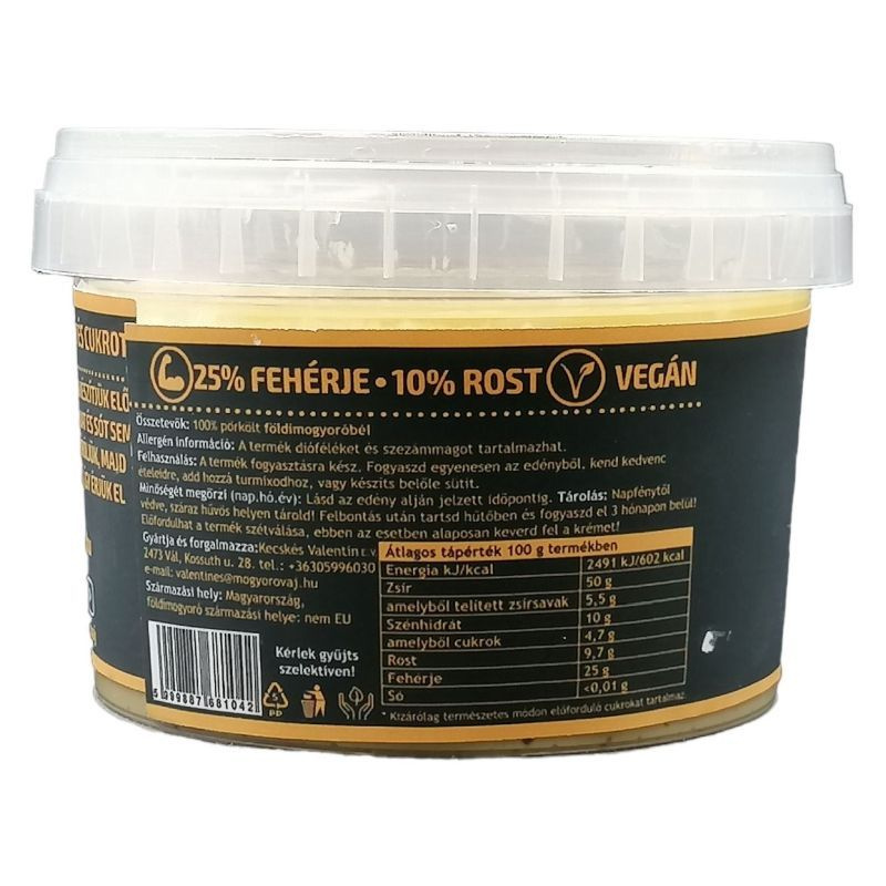 Ez a krém a pörkölt földimogyoróból készült, amely gazdag fehérjében és jó zsírokban. A földimogyoró krém nemcsak finom, hanem nagyszerű tápanyagforrás is, hiszen vitaminokat és ásványi anyagokat tartalmaz, mint például E-vitamin és folsav. Az íze kellemesen diós, és a krémes textúrája lehetővé teszi, hogy könnyedén használható legyen különböző ételekhez. Kenheti reggelire, vagy akár süteményekbe is beleteheti.