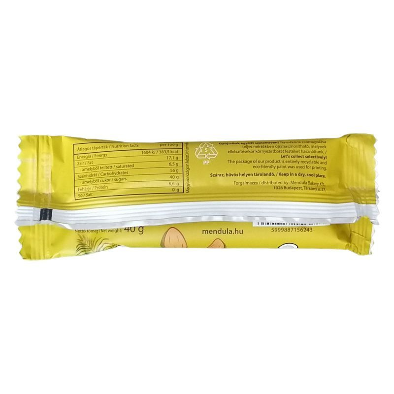 Mangós-kókuszos gyümölcsszelet - cukormentes, melengető trópusi ízvilág. A finomra őrölt mandula, a fűszeres aromájú mangó és a gyengéd ízű kókusz napsütötte frissessége egy intenzíven trópusi hangulatú snackben.