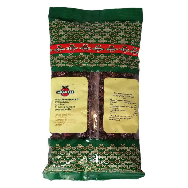 Összetevők: aszalt vörös áfonya, cukor, napraforgó olaj.