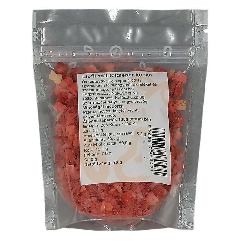 Válassza a Nuts & Berries liofilizált kockáit, ha igazán egyedit szeretne alkotni a konyhájában! Fogyasztható akár önmagában, de desszertjei elkészítésekor is csupán képzelete szabhat határt felhasználási módjainak.