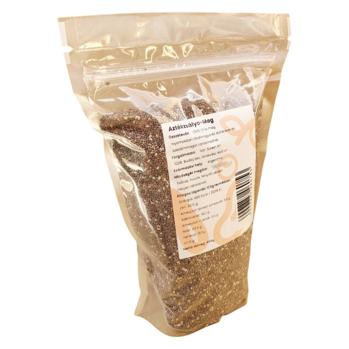 Az Aztékzsálya-Mag, más néven chia mag, egy Argentínából származó, 100% természetes élelmiszer, amelyet a Nol-Sweet Kft. forgalmaz. A termék gazdag rostforrás lehet, és különféle étrendekbe is beilleszthető. A chia mag nyomokban földimogyorót, dióféléket és szezámmagot tartalmazhat, ezért allergiások számára körültekintést igényel. A termék hosszú eltarthatóságának megőrzése érdekében száraz, hűvös és fénytől védett helyen tárolandó.