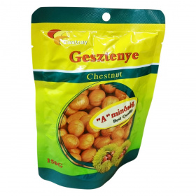 A csomagolás 100%-ban természetes, héj nélküli, főtt gesztenyét tartalmaz hozzáadott cukor nélkül.