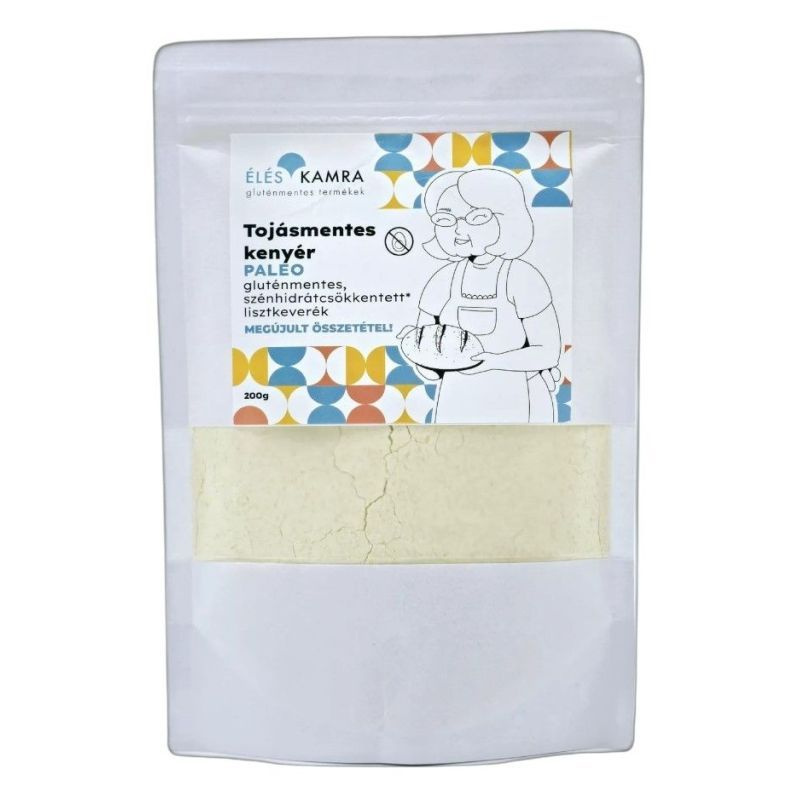 Összetevők: tápióka keményítő, mandulaliszt, szezámliszt, útifűmaghéj liszt, paleolit éléskamra sütőpor (savanyúságot szabályozó anyag: borkősav, térfogatnövelő szer: nátrium-hidrogén-karbonát, tápióka keményítő) Himalaya só, citromsav. Szezámmagot és dióféléket felhasználó üzemben készült. Száraz, hűvös helyen tartandó.